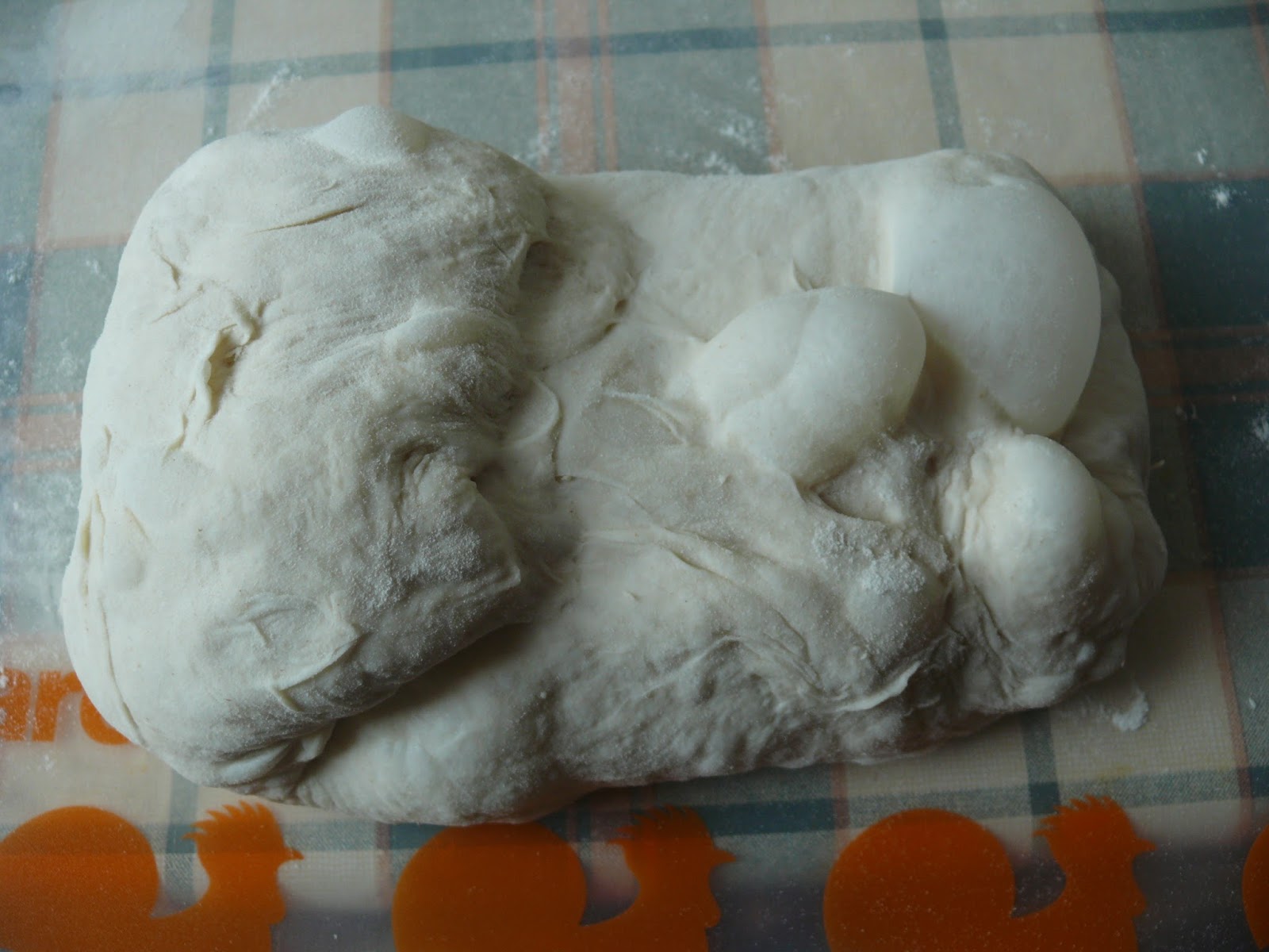 Fentiekből tésztát dagasztottam. Nem lett túl sima, de ezzel a kovásszal ilyen lesz a tészta.